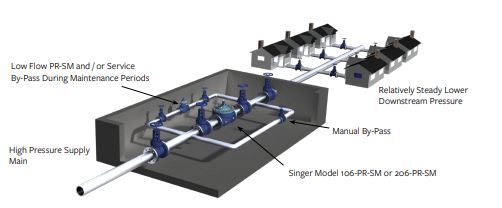 Singer PR-SM có thể được sử dụng cho hệ thống phòng cháy chữa cháy bởi vì nó tự động giảm áp suất đầu vào cao hơn xuống mức